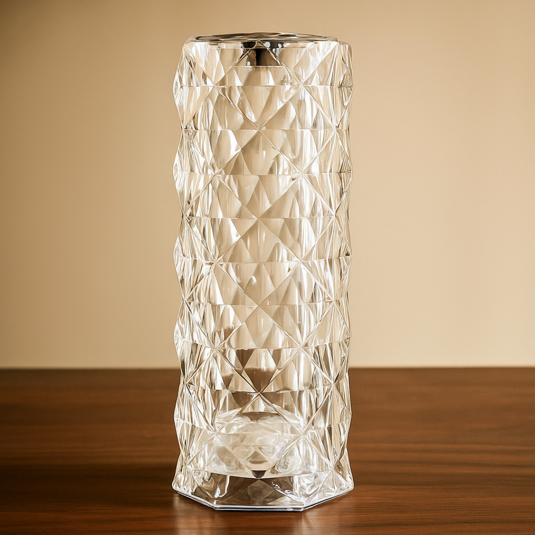 Bring elegance and ambiance to your home with the Crystal Luxe LED Acrylic Vase. Designed with a diamond-cut pattern, this stunning piece transforms into a radiant table lamp when lit, glowing in vibrant colors like blue, pink, and white. Perfect as a decorative centerpiece, mood light, or modern home accessory.