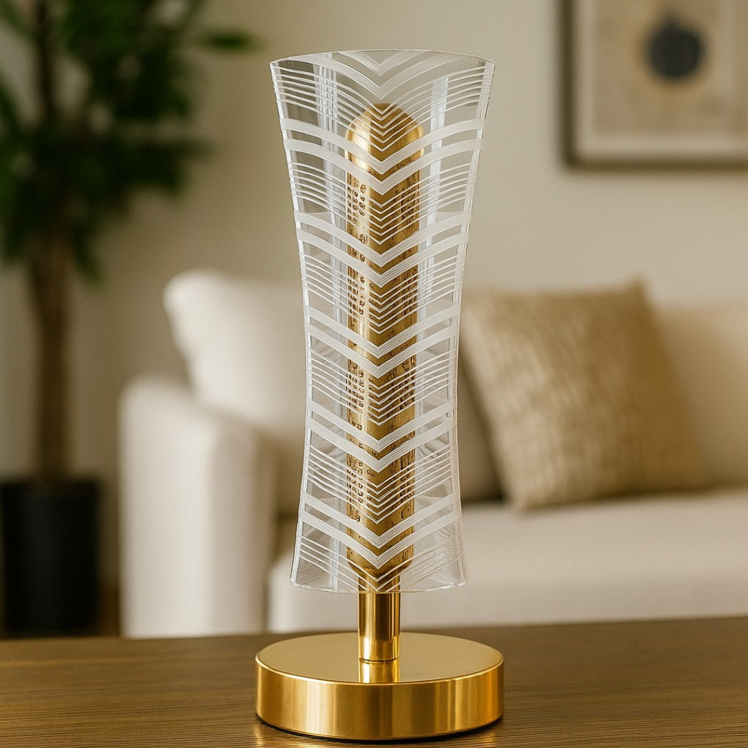Bring elegance and warmth into your living space with the Aurora Luxe Crystal LED Table Lamp. Designed with a golden base and a frosted patterned glass shade, this lamp radiates sophistication while providing a cozy and modern ambiance. Its multicolor LED options allow you to switch between soft warm light, cool white, and vibrant color modes, making it perfect for bedrooms, living rooms, or offices.